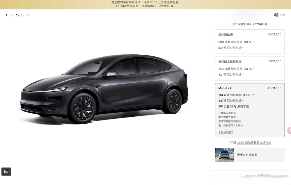 而就在今天,特斯拉6座Model Y也正式開賣,售價為33.9萬元。