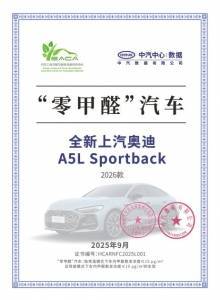 > 全新上汽奧迪A5L Sportback 榮獲中汽中心“零甲醛”汽車認證