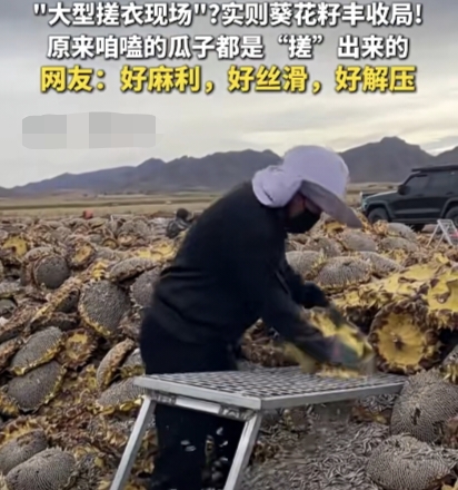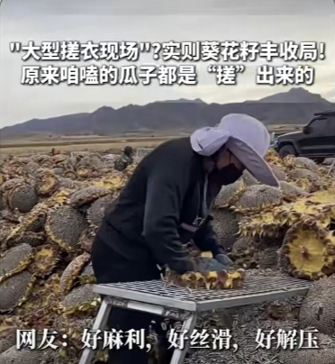 近日,一段來自內蒙古葵花籽主產區的采收視頻在網絡上意外走紅,鏡頭里,曬得金燦燦的向日葵花盤整齊碼放,工人雙手握住花盤輕輕搓揉,或是用木棒順勢敲打,飽滿的葵花籽便如碎玉般簌簌落下,網友見狀紛紛調侃,這哪里是采收,分明是“大型搓衣現場”,生動比喻讓傳統農事多了幾分趣味。