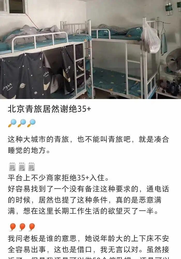 開門做生意,最怕的就是“麻煩”。而一個超過35歲、還愿意擠在八人間里上下鋪的“大齡青年”,在某些老板眼里,大概就是“麻煩”的同義詞。可能打呼嚕聲特別大,可能作息跟年輕人完全錯開,也可能,只是看起來就沒那么“好管理”。