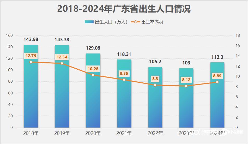 2024年,廣東新生兒數量突破113.3萬人,出生率達到8.89‰,成為全國唯一出生人口超百萬的省份,占全國新生兒總數的近七分之一。
